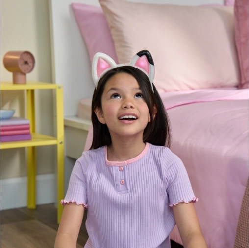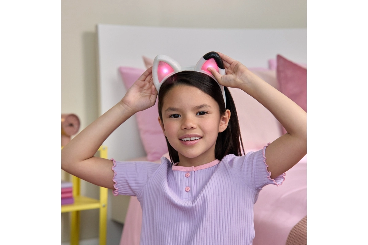 Rozžiarte každé prezliekanie a hranie rolí s interaktívnou čelenkou inšpirovanou seriálom Gábikin kúzelný domček. Realistické mačacie ušká s ružovými vnútornými časťami a typickým čiernym zakončením ožijú svetlami, zvukmi a pohybovou aktiváciou, takže deti okamžite vstúpia do magického sveta Gábiky.