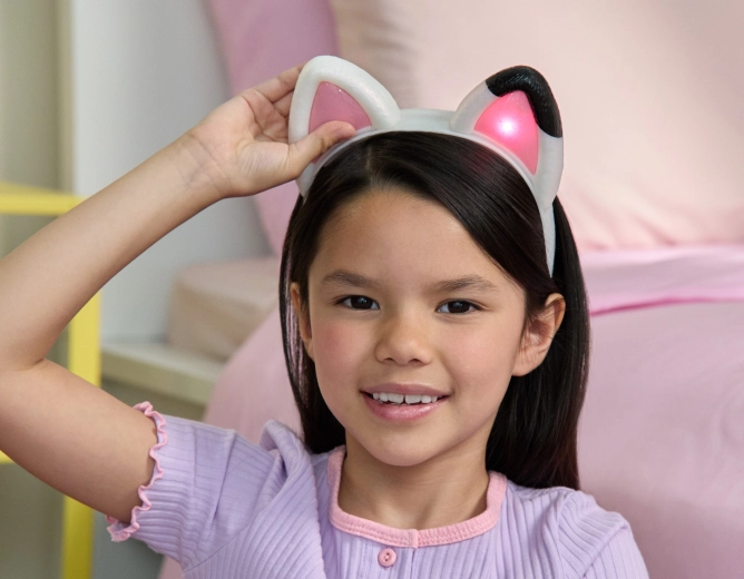 Táto interaktívna čelenka inšpirovaná hrdinkou z obľúbeného detského seriálu umožní deťom cítiť sa ako samotná Gabby. Vďaka jemnej a ľahkej konštrukcii dobre sedí na hlave a zúbky na vnútornej strane pomáhajú udržať čelenku na mieste aj počas aktívnej hry.