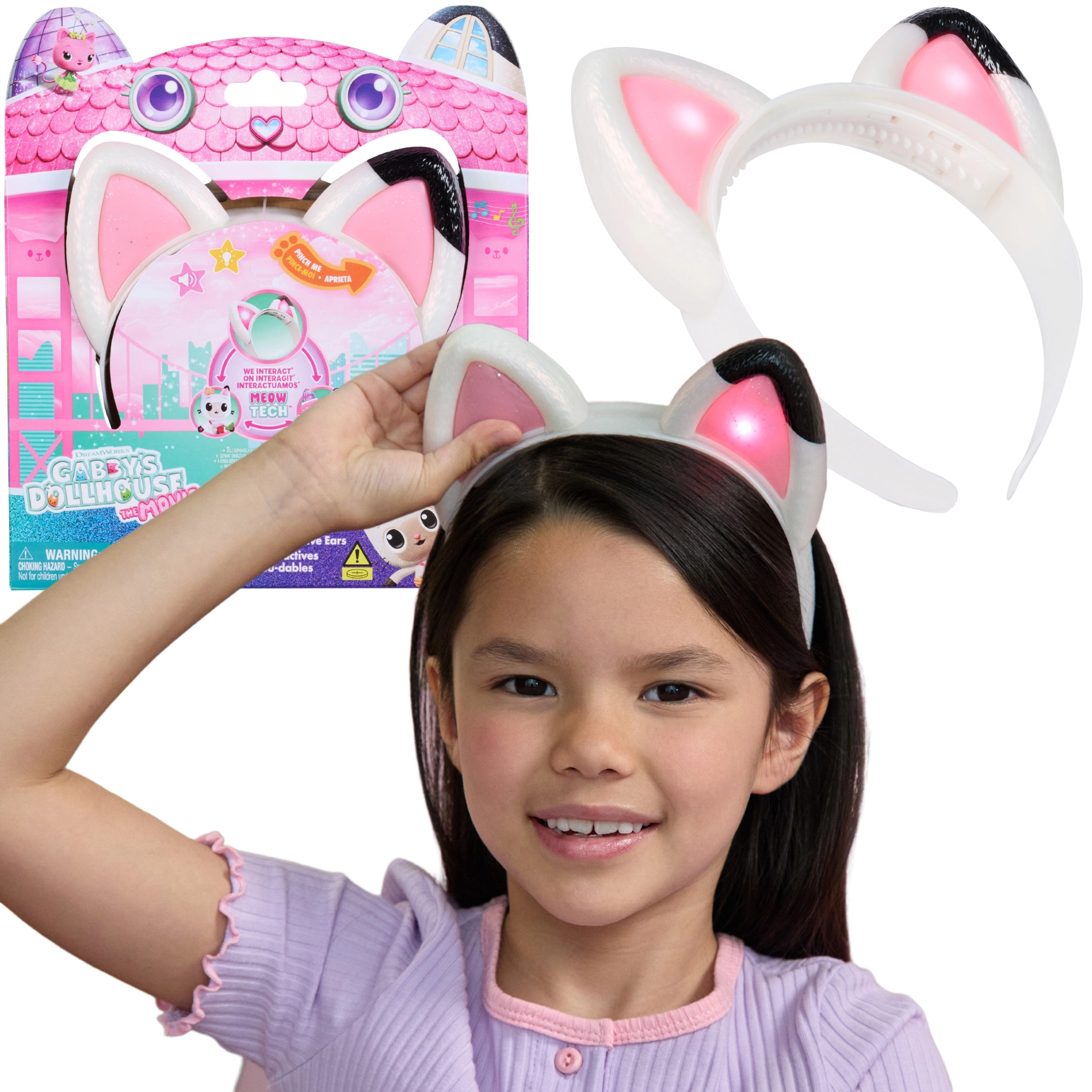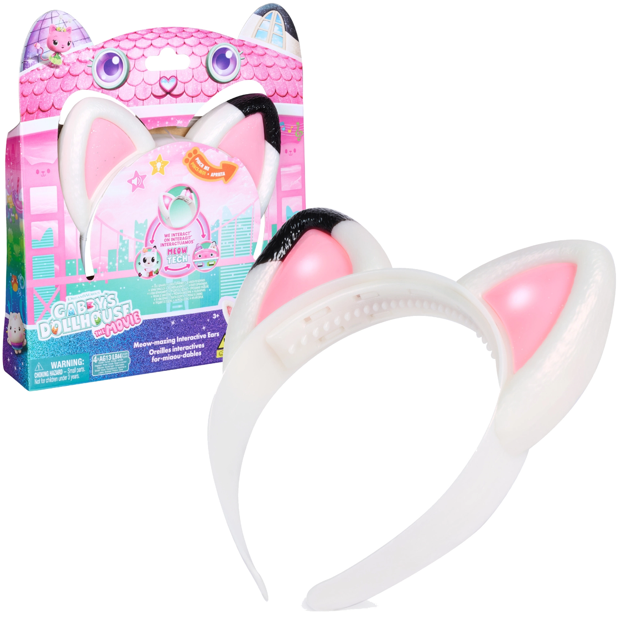 Vstúpte do sveta seriálu Gabby’s Dollhouse s kúzelnou čelenkou s mačacími uškami. Bielé prevedenie s ružovým vnútrajškom a roztomilou čiernou bodkou na jednom ušku poteší každého malého fanúšika. Po stlačení uška sa ozve smiech Gabby, mňaukanie a veselá melódia. Ideálne na prezliekanie, hranie rolí aj ako doplnok ku kostýmu.