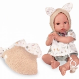Bábika je vybavená realistickými prvkami v tvári a na končatinách, čo jej dodáva autenticitu a príťažlivosť.