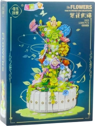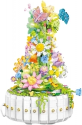 Vynikajúca stavebnica, ktorá kombinuje pestrú flóru s elegantným dekoračným prvkom, ponúka detailné štruktúry kvetín, listov a motýľov. Zostavená kompozícia stúpa špirálovito nahor, zakončená nádherným vrcholom. Základ zostavy je okrúhly, biely, s dekoratívnym dizajnom.