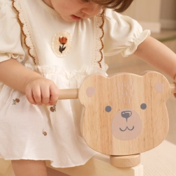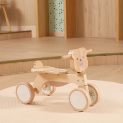 Bezpečnosť podporuje blokácia riadenia, ktorá obmedzuje nadmerné vytočenie riadidiel. Deti si počas hrania prirodzene rozvíjajú rovnováhu, koordinačné schopnosti a hrubú motoriku. Roztomilá „medvedia“ predná časť a prírodný dizajn skvele zapadnú do detskej izby.