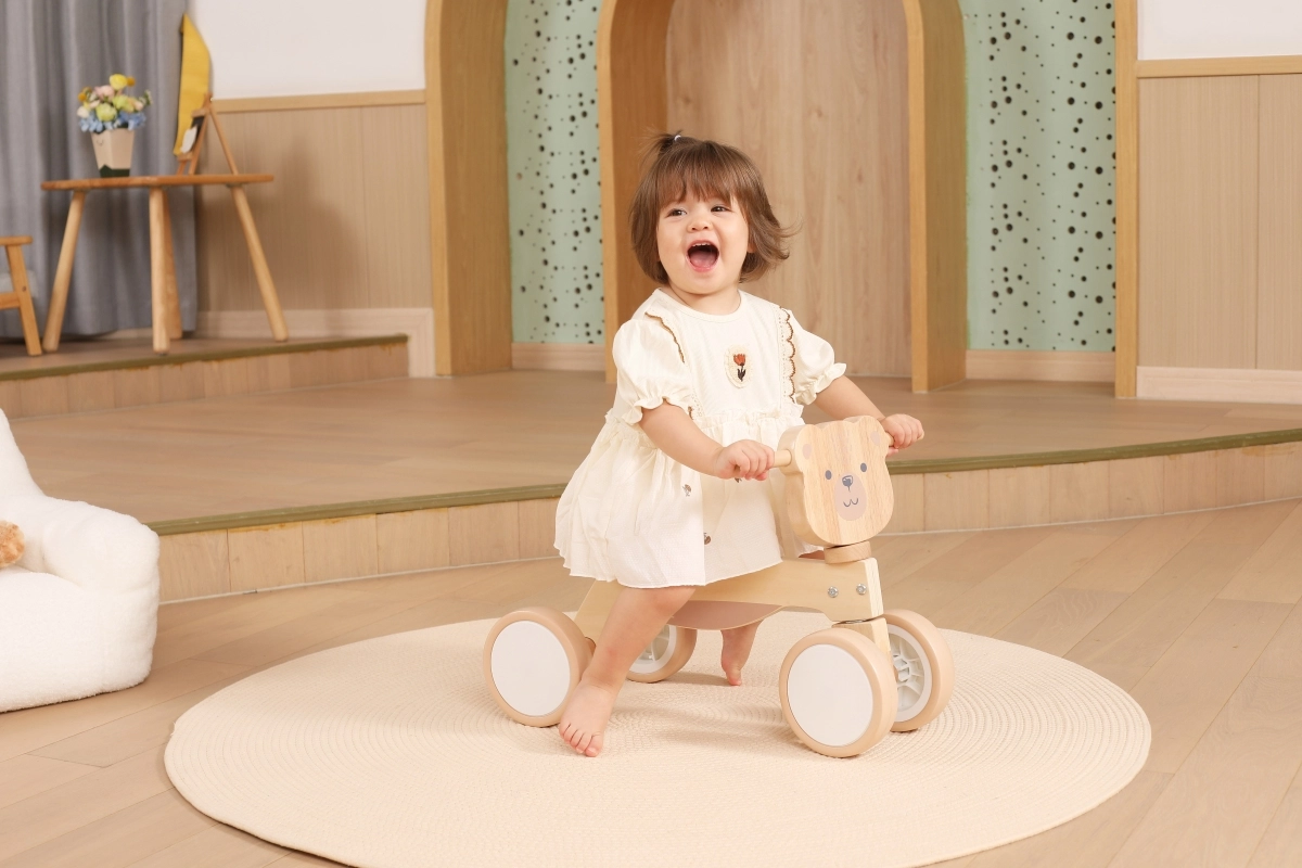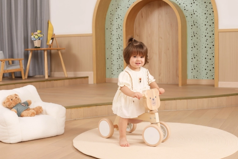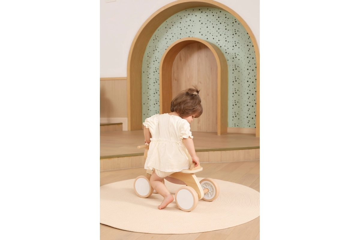 Odrážadlo VIGA PolarB je navrhnuté pre malých jazdcov, ktorí sa učia koordinácii a rovnováhe. Pevná drevená konštrukcia, nízke sedlo s opierkou a hladké zaoblené hrany prinášajú istotu pri každom odraze. Štyri široké kolieska EVA idú ticho a nepoškriabu podlahu, takže je ideálne do interiéru aj na hladké vonkajšie povrchy.