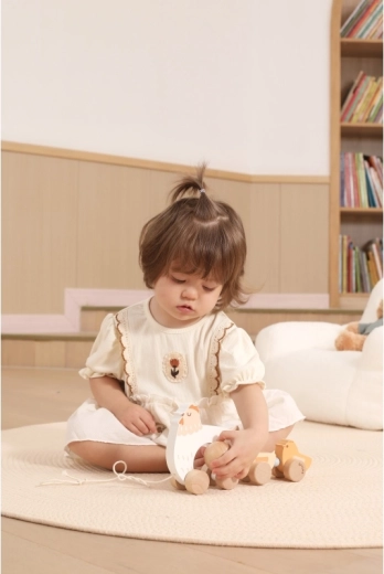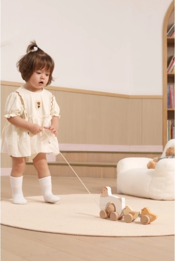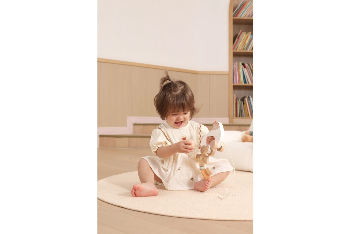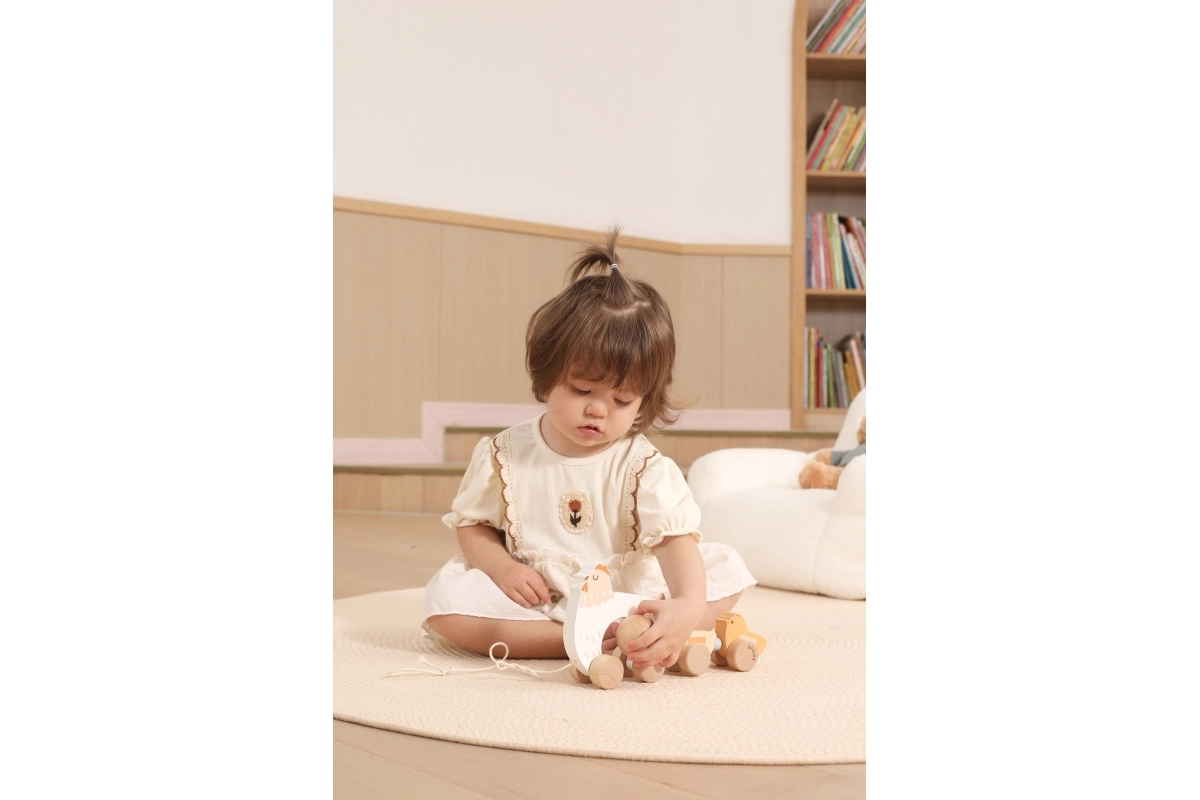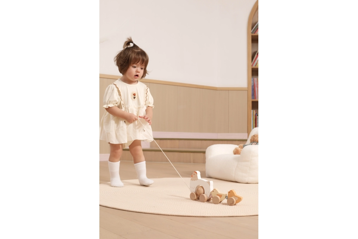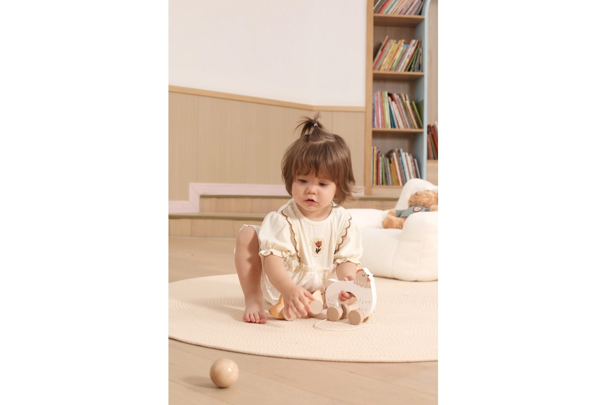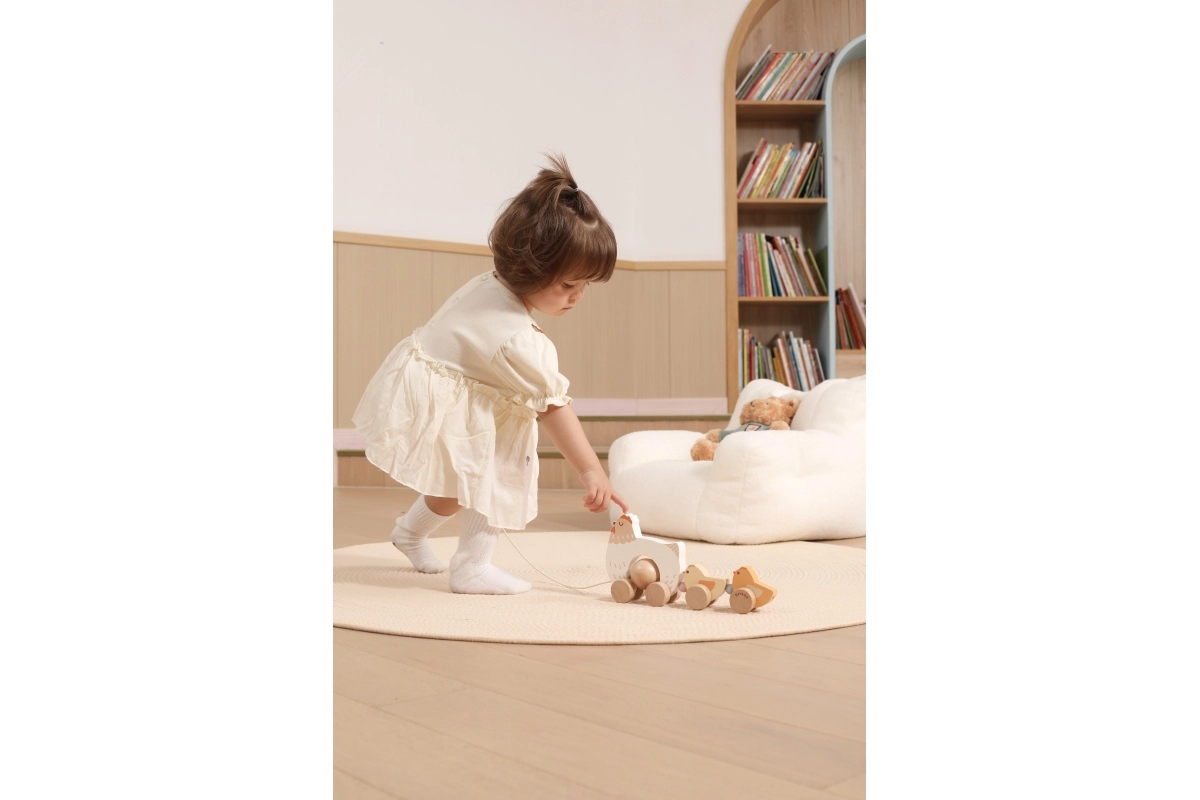 Pri ťahaní sa kuriatka rytmicky pohupujú a lákajú deti k ďalším krôčikom – zábava a tréning rovnováhy v jednom.