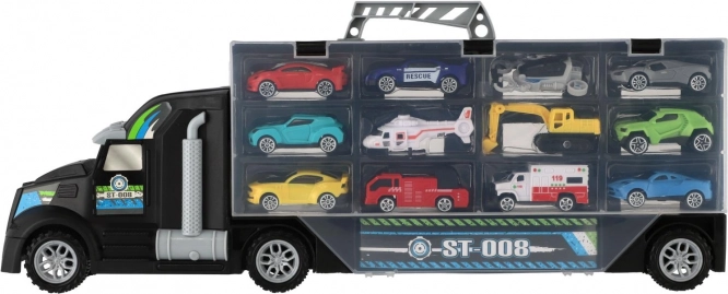 Veľký kamión prepravník s voľným chodom je ideálnym darčekom pre malých nadšencov do áut. Tento multifunkčný kamión slúži ako úložný box aj herný set, ktorý umožní jednoduchú prepravu a vystavovanie dopravných prostriedkov.