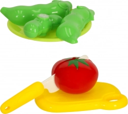 Táto bohatá sada umožní deťom pripravovať „jedlá“ z farebného ovocia a zeleniny rozdelených na diely, ktoré sa spájajú suchým zipsom. Hra s nožíkmi a príslušenstvom napomáha správnemu úchopu, koordinácii oko–ruka a prirodzene zoznamuje s názvami potravín.