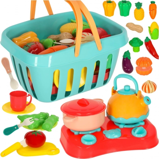 Vďaka veľkému počtu prvkov sa deti zahrajú na obchod, kuchynku aj reštauráciu. Krájanie, servírovanie aj varenie s kanvičkou, hrncom a krájacou doskou rozvíjajú fantáziu, komunikáciu a podporujú zavádzanie zdravých stravovacích návykov.