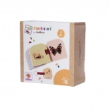 Táto montessori drevená knižka podnecuje prirodzenú zvedavosť a rozvoj zmyslov. Na 6 pevných drevených stranách nájdete z oboch strán tlačené ilustrácie zvieratiek, ktoré deti zaujmú farbami aj jednoduchosťou. Vďaka zaobleným rohom a príjemnému drevu sa knižka skvele drží aj v malých rúčkach.