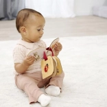 Praktický krúžok na pripevnenie umožní vziať knižku bezpečne na cesty a zaistiť ju na kočíku alebo v autosedačke. Vyrobená je zo 100% lipového dreva s certifikáciou FSC, takže spĺňa nároky na kvalitnú a udržateľnú hračku pre najmenších od 12 mesiacov.