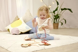 Táto drevená vyšívacia sada so zvieratkami podporuje kreativitu a sústredenie. Deti si môžu zvieratká ozdobiť pomocou šnúrok a ďalších doplnkov a vytvoriť tak originálne výtvory, ktoré im prinesú množstvo zábavy.
