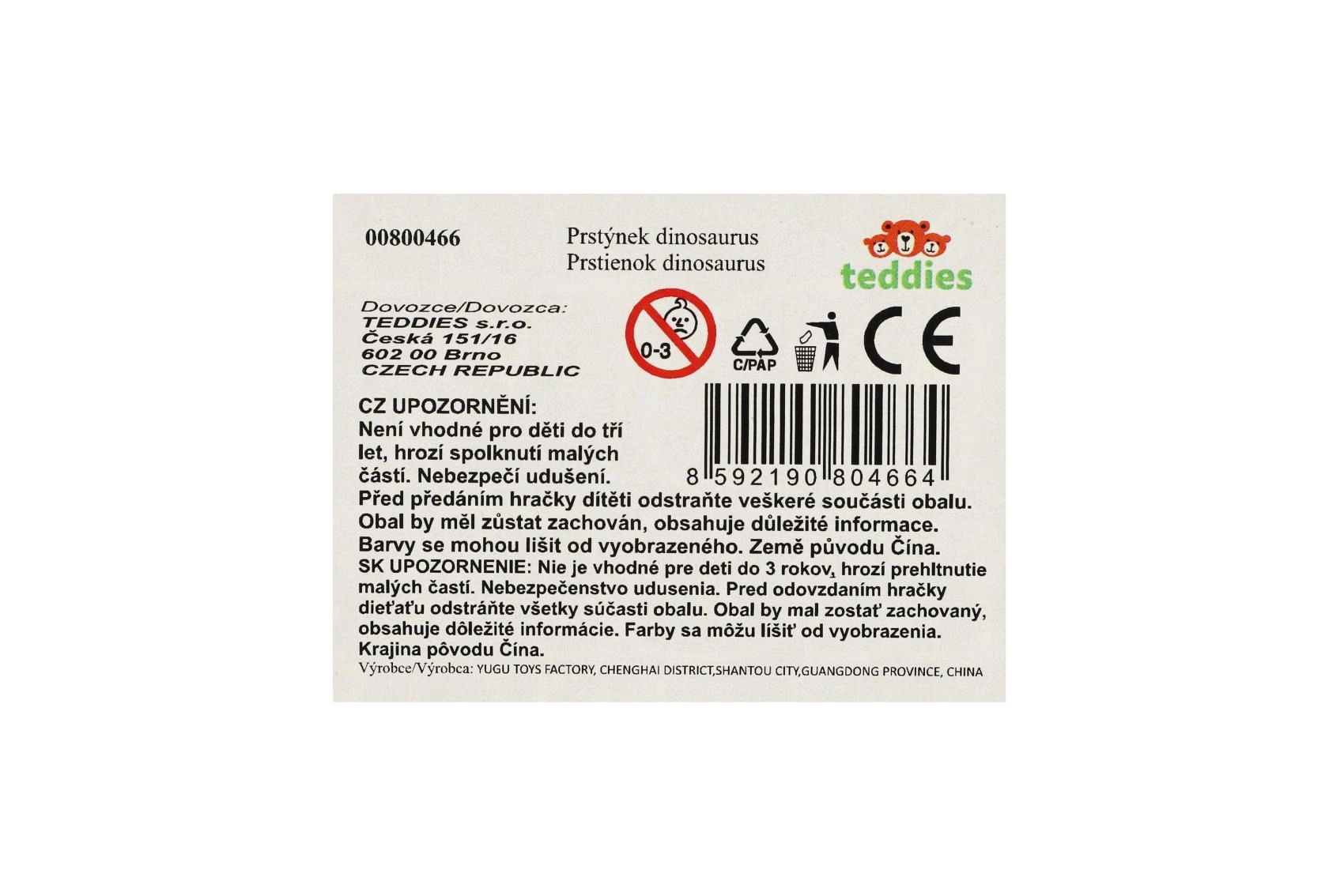 Prstienok je dodávaný v blistri, pre veľkoobchodné balenie je k dispozícii box po 24 kusoch (mix druhov). Vhodné od 3 rokov.