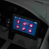 Bohatý audio panel MP4 prináša FM rádio, MP3, USB, Bluetooth a AUX, nechýbajú zvuky a klaksón na volante ani prednahrané melódie. Dvojité sedadlo z eko kože s velúrom má 3-stupňové nastavenie a bezpečnostné pásy. Rodičia ocenia ovládač 2,4 GHz s tromi rýchlosťami a funkciou Stop, indikátor stavu batérie a kvalitné spracovanie.
