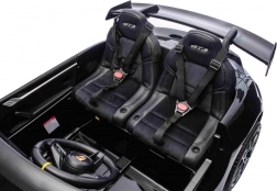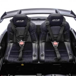 Multimediálny panel s vyberateľným MP4 tabletom poteší obľúbenými melódiami, FM rádiom, prehrávaním MP3 cez USB/AUX aj Bluetooth. Športový režim zvýrazní zvukové efekty pri zošliapnutí plynu. Dvojité sedadlo z ekokože s velúrovým finišom a bezpečnostnými pásmi má 3-stupňové nastavenie pre ideálny posed.