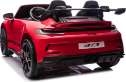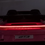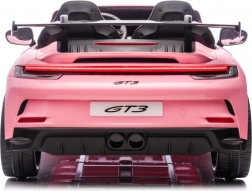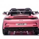 Štýlové detské elektrické auto inšpirované ikonou PORSCHE 911 GT3 prináša deťom realistický zážitok z jazdy. Dva tiché motory 2×280 W, silná batéria 24 V 10 Ah a komfortné dvojmiestne sedadlo z ekokože s bezpečnostnými pásmi zaistia výkon aj pohodlie. Auto ponúka EVA kolesá pre tichú jazdu, LED svetlá vpredu aj vzadu, plynulý rozjazd a diaľkové ovládanie 2,4 GHz s núdzovým tlačidlom Stop pre maximálnu bezpečnosť. Multimediálny panel s FM rádiom, MP3, Bluetooth, USB a vyberateľným tabletom MP4 sa postará o zábavu pri každej jazde.