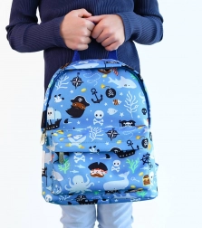 Roztomilý batôžtek s pirátskym motívom si deti zamilujú a rodičia ocenia jeho premyslené spracovanie. Hlavná komora pojme desiatu, fľašu aj drobnosti, zatiaľ čo predné vrecko na zips udrží všetko po ruke. Ergonomiu zabezpečujú polstrované ramenné popruhy a pohodlný chrbtový panel, hrudný popruh zas pomáha udržať popruhy na ramenách aj pri behu.