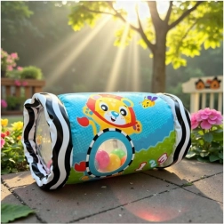 Vďaka kontrastným vzorom, kukátkovým okienkam a rozkošným ilustráciám zvieratiek je hračka vizuálne podnetná a zároveň bezpečná pre malé rúčky. Je ľahko nafukovacia, ľahko sa prenáša a skvele sa hodí na hranie doma, na návštevách aj na cestách.