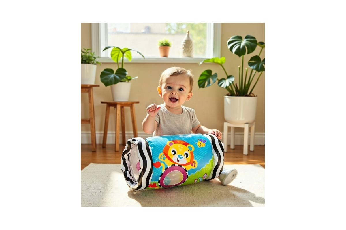 - Podpora lezenia a koordinácie: Valec sa plynule odvaľuje a láka dieťa k posunu vpred.