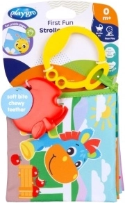 Sprestrite každú prechádzku šikovnou hračkou, ktorá podporí zmyslový rozvoj bábätka. Farebné ilustrácie zvieratiek, šuštivé stránky a kontrastné prvky stimulujú zrak, hmat aj sluch, zatiaľ čo mäkké hryzátko jemne masíruje ďasná. Praktický žltý klip zaistí, že knižka zostane na mieste a bude vždy po ruke.
