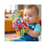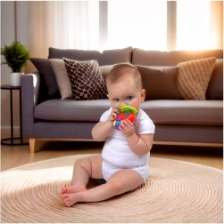 Tri mäkké hryzátka s rôznymi textúrami poskytujú úľavu pri prerezávaní zúbkov, zatiaľ čo kompaktný tvar kľúčov je ideálny do malých ručičiek. Hračka tak prirodzene podporuje jemnú motoriku, koordináciu ruka–oko a prvé zručnosti uchopenia.