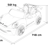 Štýlové detské elektrické auto inšpirované ikonou PORSCHE 911 GT3 ponúka silné dvojmotorové pohony 2×280 W, 24V/10Ah batériu, dvojsedadlo z ekokože s velúrom a penové kolesá EVA pre pohodlnú jazdu. Nechýbajú LED svetlá vpredu aj vzadu, FM rádio, MP3, Bluetooth a USB ani diaľkové ovládanie 2,4 GHz s núdzovým tlačidlom Stop pre maximálnu bezpečnosť.