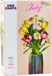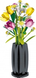 Táto kreatívna stavebnica umožní postaviť pestrý bukét tulipánov a sedmokrások doplnený modernou vázou z kociek. Po zostavení meria dekorácia približne 36,6 cm na výšku a skvelo zapadne do moderných interiérov – od obývačky po pracovný stôl.