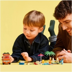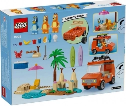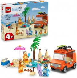Užite si rodinné dobrodružstvo s postavičkami BLUEY, Bingo a maminkou v farebnej stavebnici s autom, plážou a množstvom doplnkov. Otváracia strecha vozidla, surfovacie dosky, pieskový hrad a hravé minifigúrky podporujú tvorivosť, fantáziu aj prvé staviteľské zručnosti detí od 4 rokov.