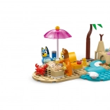 Vydajte sa s BLUEY na slnečný deň k moru! Stavebnica prináša ikonické rodinné auto so strechou pre dve surfovacie dosky, zadným priestorom pre chladiaci box a otváracou strechou pre ľahký prístup k interiéru. Nechýba pôvabná plážová scéna: veľký pieskový hrad, palma, ležadlo, slnečník a dokonca aj pieskový morský chvost, ktorý si môže nasadiť minifigúrka.