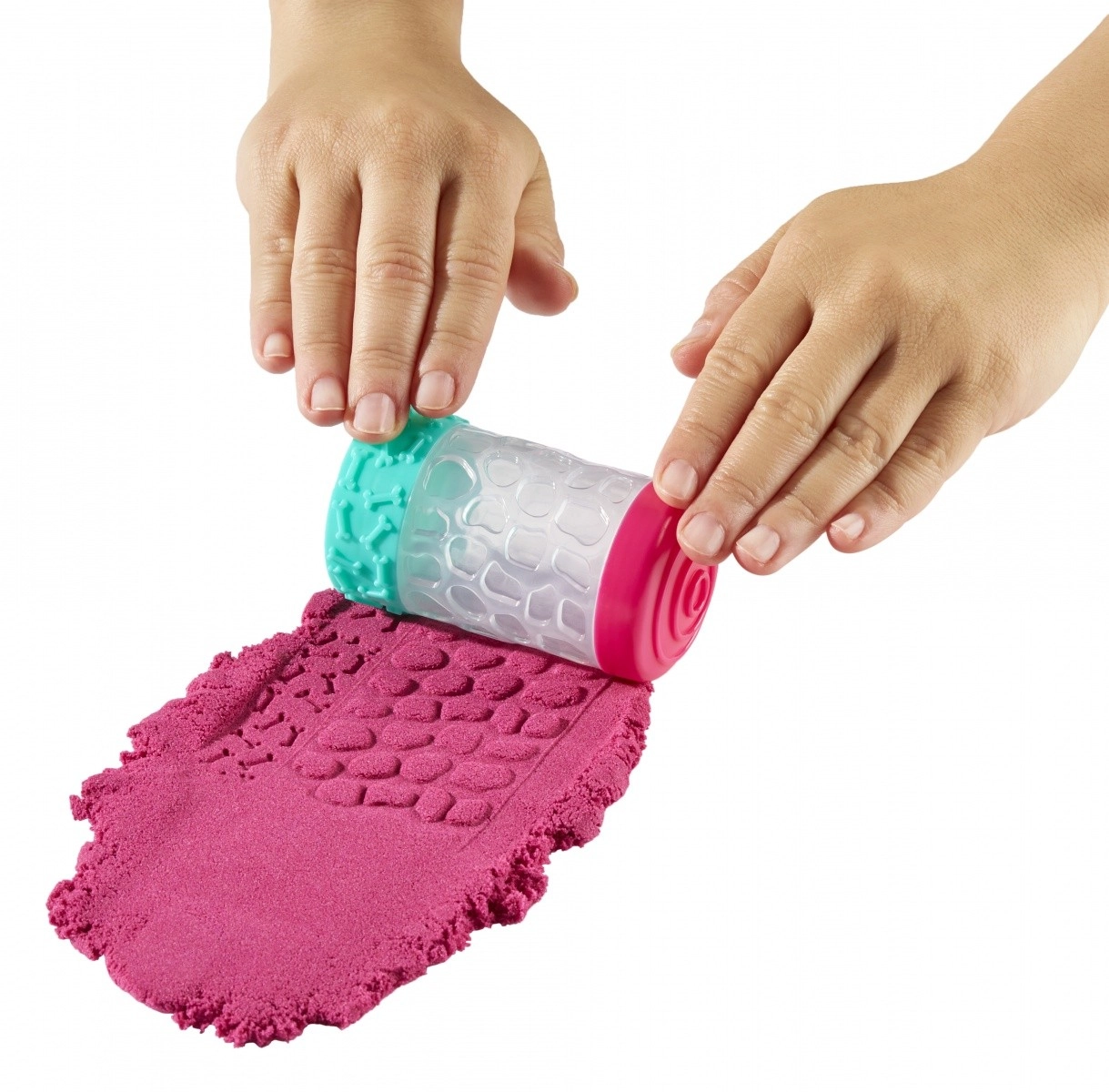 Ľahké vytváranie štruktúrovaných povrchov: valček a pečiatky zanechajú jasné stopy v piesku aj hmote.
