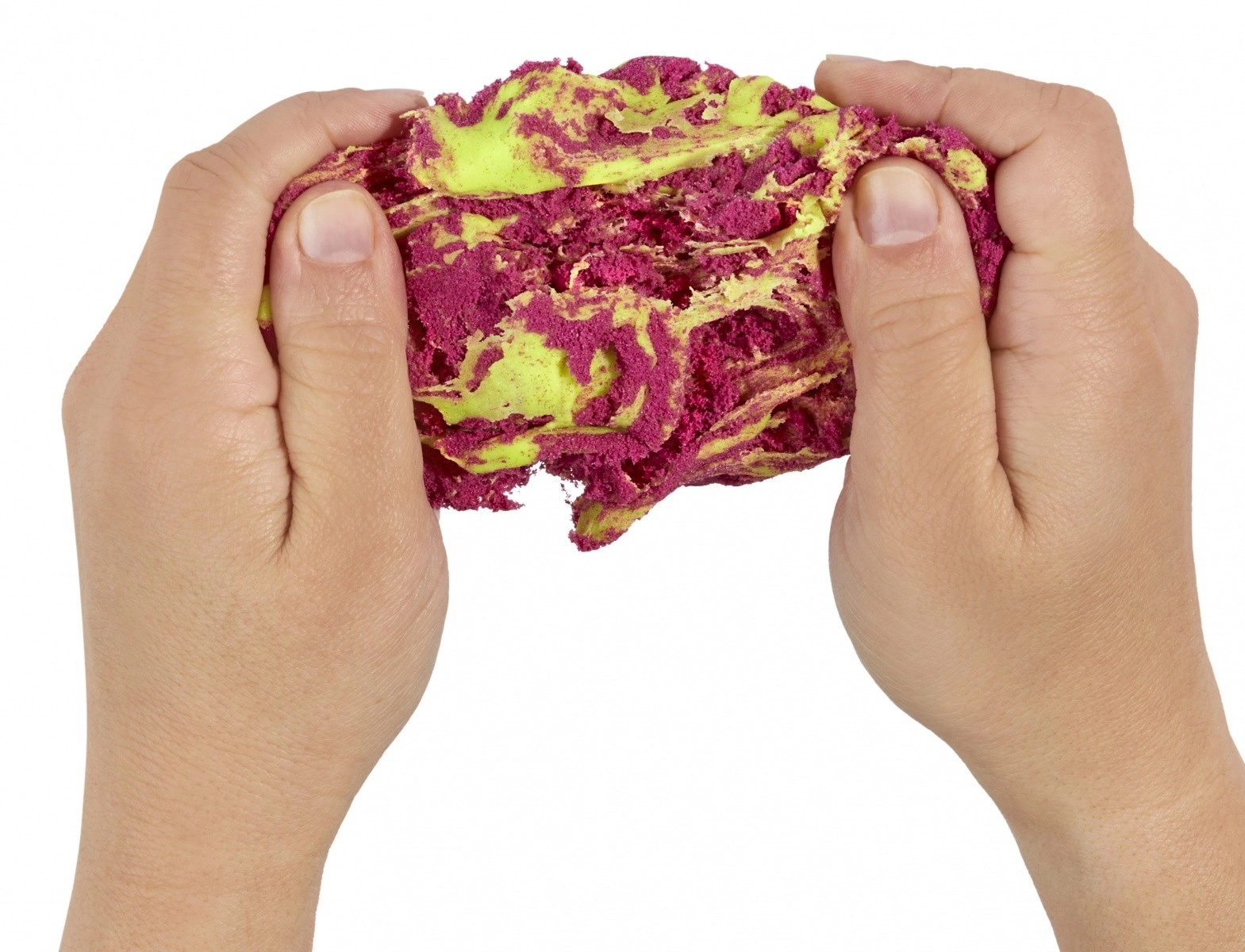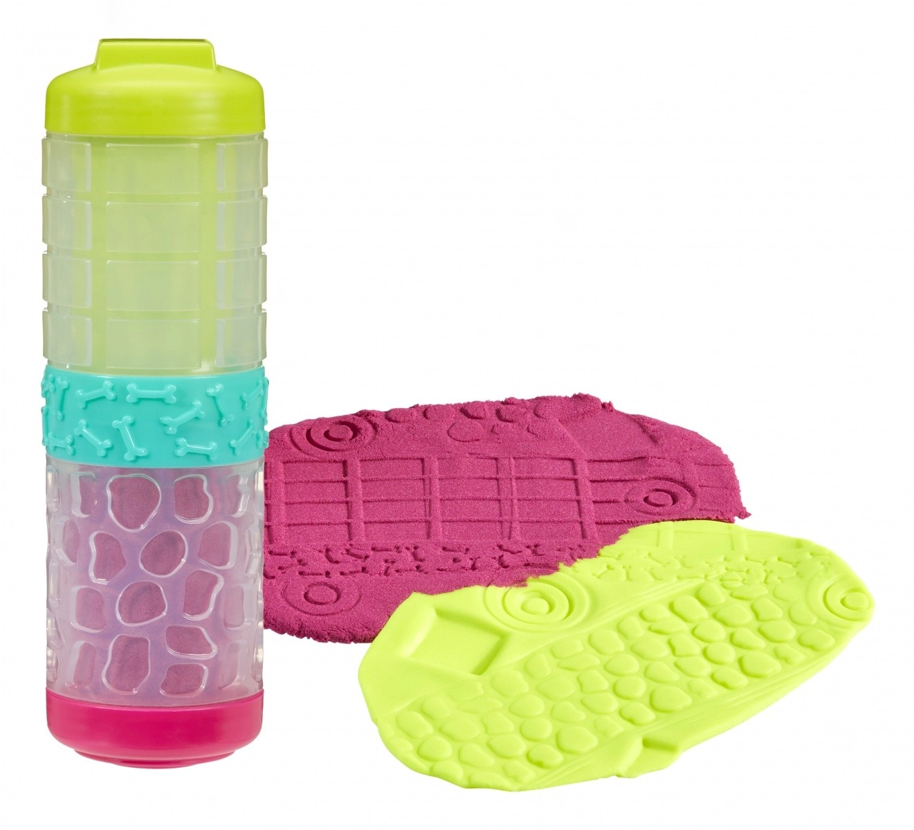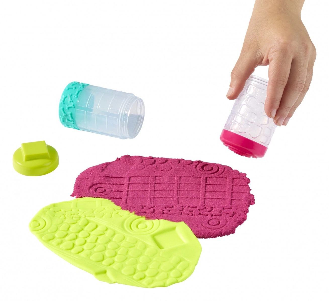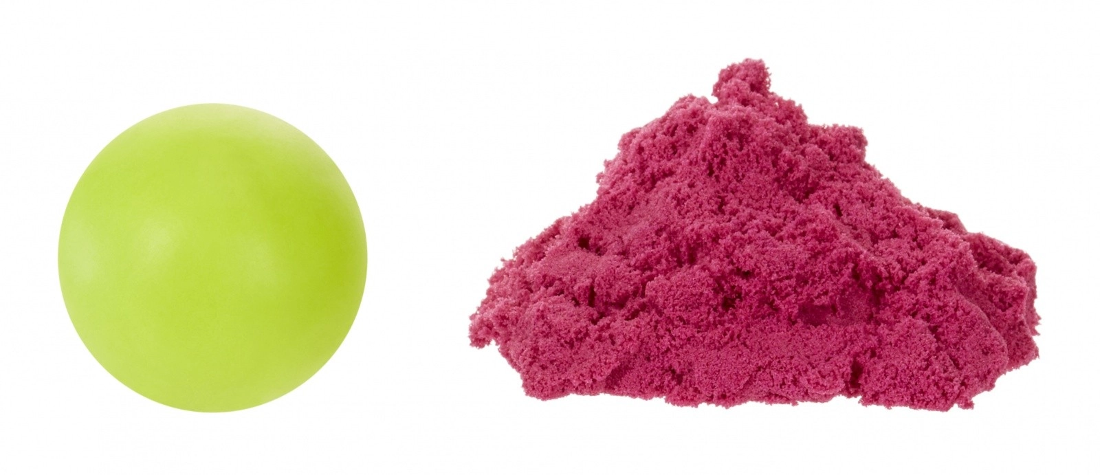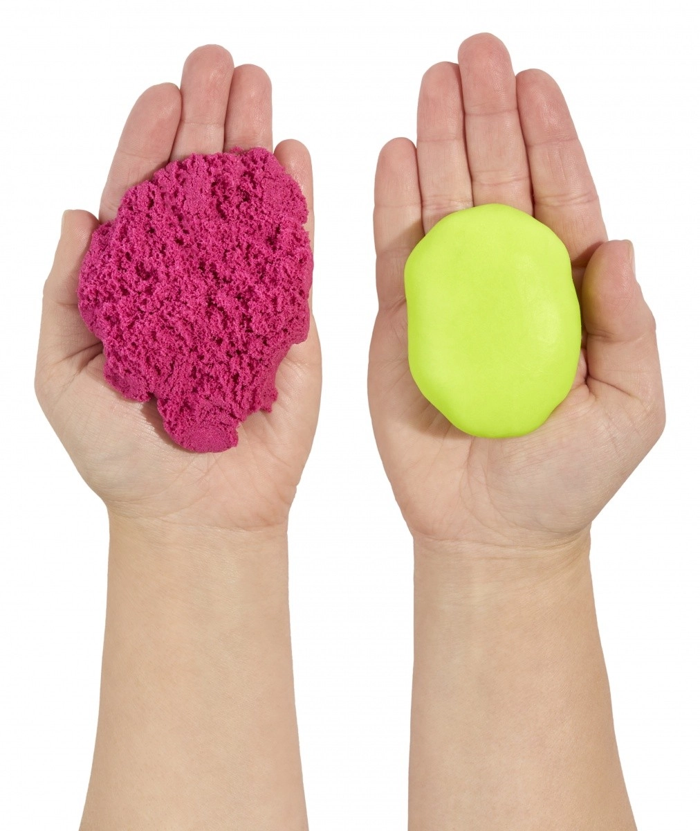 Tento šikovný kreatívny set prináša dve rôzne textúry pre maximálnu zábavu – jemnú, hladkú hmotu a štruktúrovaný, tvarovateľný piesok. Vďaka špeciálnemu zloženiu hmota nevysychá, takže sa deti môžu hrať znova a znova. Limetková a ružová farba láka k miešaniu tvarov, vzorov a nápaditému modelovaniu.