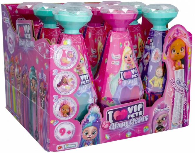 Sada VIP PETS Glam Gems S5 je stvorená pre všetkých, ktorí milujú lesk, farby a zábavné účesy. Každé tematické balenie skrýva roztomilú figúrku maznáčika s dlhými vláskami a výber lesklých doplnkov, ktoré premenia každú hru na kreatívne kadernícke štúdio.