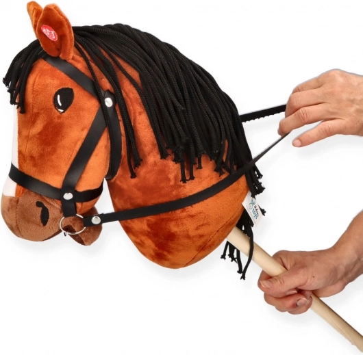 Hobby horse hnedák na tyči pre deti 3+. Ľahký, bezpečný a odolný. Rozmery 70×13 cm, hlava 30×24×13 cm, tyč 40 cm. Spĺňa normy CE.