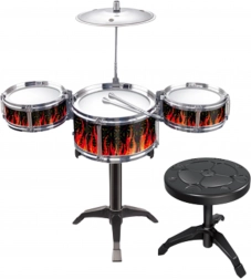 Súprava zaujme zaujímavými zvukovými efektmi a atraktívnym plameňovým dizajnom v čierno‑červenej farebnej kombinácii. Deti si môžu vytvárať vlastné rytmy, rozvíjať motoriku, koncentráciu i sebavedomie pri vystupovaní pred rodinou. Skvelá voľba pre prvé hudobné kroky.