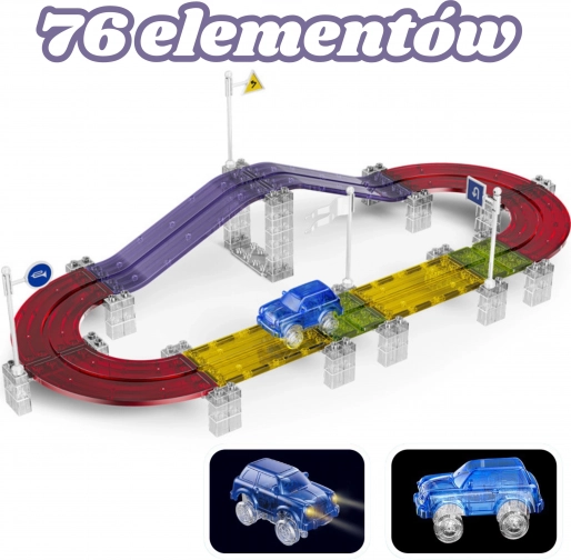 Objavte stavebnicu, ktorá rastie s fantáziou vašich detí. Magnetické prvky sa k sebe rýchlo a pevne prichytia a umožnia tak vytvárať mosty, rampy aj prudké zákruty bez použitia náradia. Vďaka LED podsvietenému autíčku je jazda atraktívna aj pri zhasnutom svetle.