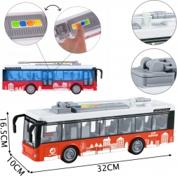 Tento detailne spracovaný trolejbus v mierke 1:16 prináša deťom autentický zážitok z mestskej dopravy. Vďaka štyrom tlačidlám na streche si užijú realistické zvuky jazdy, signálov a hlásení, zatiaľ čo vnútorné podsvietenie podčiarkuje atmosféru skutočného vozidla. Frikčný pohon umožní po ľahkom postrčení prejsť niekoľko metrov priamo.