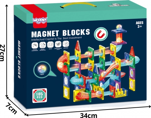 Woopie magnetické stavebnice 3D – edukačná guľôčková dráha, 105 dielov