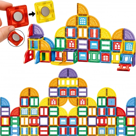 Objavte kúzlo tvorenia s magnetickými stavebnicami 3D od značky WOOPIE. Tento vzdelávací set so 100 dielmi sa spája pomocou silných magnetov a umožní deťom stavať plošné aj priestorové konštrukcie – od jednoduchých tvarov až po prepracované stavby, ako je zámok. Skvelý spôsob, ako rozvíjať kreativitu, logické myslenie a jemnú motoriku hrou.