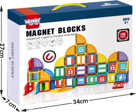 Magnetické stavebnice 3D WOOPIE, vzdelávacia sada Zámok 100 ks. Silné magnety, rozvoj kreativity a logiky, vhodné od 3 rokov. Tvorenie plôch aj 3D stavieb.