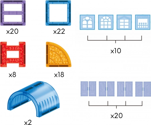 Rozmanitosť tvarov – štvorce, trojuholníky, obdĺžniky – podporuje učenie farieb a tvarov, rozvíja priestorovú predstavivosť a trénuje koordinačné zručnosti. Zahrnutá inšpirácia s príkladmi konštrukcií pomôže rýchlo začať a postupne stavať aj zložitejšie modely.
