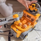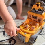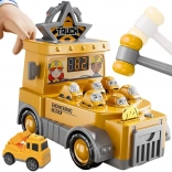 Táto interaktívna žltá stavebná nákladná hračka ponúkne hodiny aktívnej zábavy. Stačí vhodiť „mincu“, vziať do ruky mäkké kladivko a triafať vysúvajúce sa postavičky/„autá“ pre čo najvyššie skóre na displeji. Hra rozvíja jemnú motoriku, koordináciu ruka–oko, postreh aj rýchlosť reakcií.