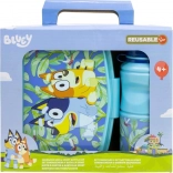 Táto kompaktná sada kombinuje všetko, čo deti počas dňa potrebujú – praktickú fľašu na pitie a pevný svačinový box. Vďaka motívu BLUEY si ju deti rýchlo obľúbia a rodičia ocenia jej odolnosť a jednoduchú údržbu.