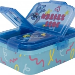 Štýlový a praktický desiatový box s motívom STITCH ponúka 1 veľkú a 2 malé priehradky na prehľadné oddelenie jedla. Je vyrobený z odolného materiálu a neobsahuje BPA – ideálny do školy, na ihrisko aj na výlety.