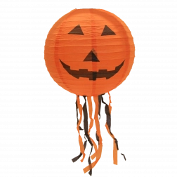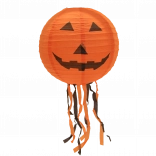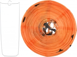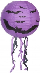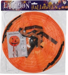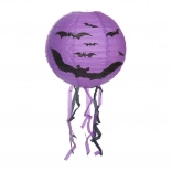 Vytvorte strašidelne čarovnú atmosféru s okrúhlym halloweenskym lampiónom s priemerom 30 cm. Lampión je z ľahkého papiera a vďaka spodným strapcom pôsobí pri zavesení veľmi efektne. Na výber sú tri výrazné motívy: tekvica (oranžová), netopiere (fialová) a pavúky (biela).