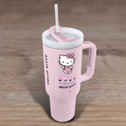 Štýlový cestovný hrnček s motívom Hello Kitty na pohodlné pitie na cestách aj doma. Vďaka nehrdzavejúcej ocele udrží nápoje dlho horúce aj studené, má ergonomický dizajn, praktické viečko so slamkou a pohodlnú rukoväť na jednoduché používanie. Ideálny do auta, do práce aj na výlety. Objem 1200 ml.