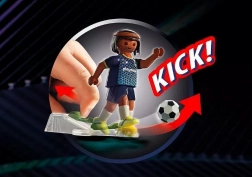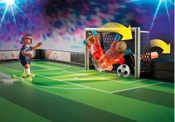 Rozložte skladaciu arénu, postavte tímy a začnite zápas! Tento set zo série PLAYMOBIL Sports & Action prináša dynamickú hru so skvelými hernými prvkami. Vďaka praktickému mechanizmu možno hráča vystreliť do lopty a presne mieriť na bránu, zatiaľ čo brankári na pohyblivých tyčiach môžu bleskovo reagovať a kryť strely.