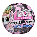 Objavte svet tajomstiev s kúzelným rozbaľovaním L.O.L. Surprise! Eye Spy Pets. Čakajú na vás vrstvy hádaniek, pieskové poklady a skryté doplnky. S pomocou dekodéra odhalíte tajné správy, budete hrabať v piesku pre ukryté doplnky a odomknete rozkošné zvieratko so špeciálnymi funkciami zmeny farby. Hľadajte aj ultra vzácnu zlatú guľu so špionážnym šteniatkom.