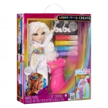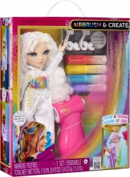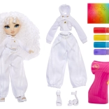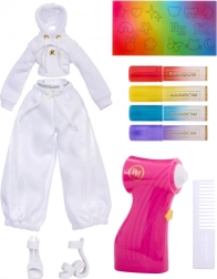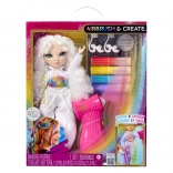 Táto kreatívna bábika je ako prázdne plátno – úplne v bielej, s bielymi vlasmi a outfitom pripraveným na vašu fantáziu. V balení nájdete štyri umývateľné dúhové fixky (červená, žltá, modrá, fialová) a praktický airbrush na jednoduché tieňovanie a rovnomerné nanášanie farby.