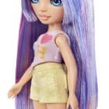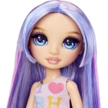 Bábika Violet z kolekcie Rainbow High prichádza v trendovom outfite s výraznými farbami a doplnkami. Vďaka kĺbom v rukách a nohách ľahko zaujme rôzne pózy a je perfektná na hranie, fotenie aj vystavenie na poličke. Dlhé, lesklé vlasy v odtieňoch fialovej a lila lákajú k česaniu a vytváraniu nových účesov.
