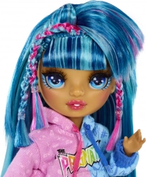 Bábika Skyler Bradshaw z kolekcie Rainbow High Jr. High žiari v ikonickej modrej a je pripravená na pódium. Vďaka plne kĺbovému telu ju ľahko nastavíš do efektných póz a s mikrofónom a mini zosilňovačom rozbehneš poriadnu show. Detailne prepracovaný outfit, dlhé modré vlasy a tematické doplnky robia z tejto bábiky skvelý kúsok na hranie aj vystavenie.