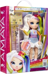 Amaya Raine zo série Rainbow High Jr. High prináša deťom svet módy a hudby v jednej roztomilej bábike. Vďaka dlhým dúhovým vlasom, detailnému oblečeniu a kĺbom je pripravená na koncerty, fotenie aj vystavenie na poličke. Doplnky vrátane mini kláves podporia hranie na hudobnú hviezdu.