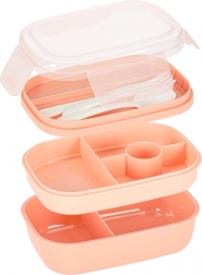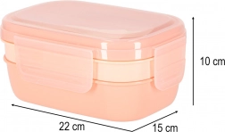 Trojposchodová konštrukcia s 8 priehradkami umožní zabaliť hlavné jedlo, prílohy aj desiatu zvlášť. Štyri klipsy pevne uzavrú veko so silikónovým tesnením, takže obsah zostane v bezpečí aj v taške. Marhuľová farba dodáva moderný vzhľad.